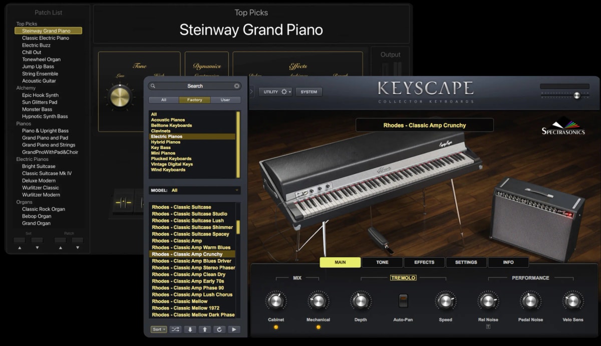 The instrument features a world-class sample-based sound library of 36 unique instrument sounds including 8 grand piano voicings, 16 electric key voicings, and 12 other instrument voicings. The sound library is designed to be as expressive as possible and features a wide dynamic range and a variety of articulations. The sound library is fully customizable and can be adjusted to match your playing style.