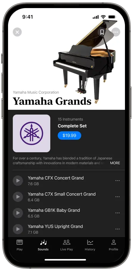 - The instrument features a world-class sample-based sound library of 36 unique instrument sounds including 8 grand piano voicings, 16 electric key voicings, and 12 other instrument voicings. The sound library is designed to be as expressive as possible and features a wide dynamic range and a variety of articulations. The sound library is fully customizable and can be adjusted to match your playing style.